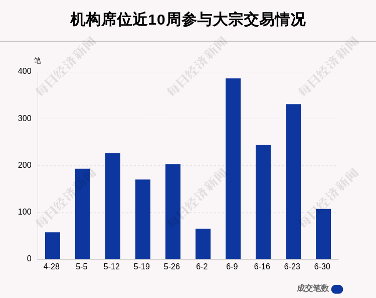 每经AI快讯,本周一共发生296笔大宗交易,其中14笔溢价,85笔平价,197笔折价,共成交30.41亿元,环比减少58.44%,涉及125家上市公司。