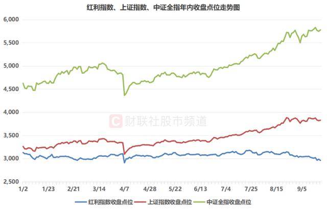 注:红利指数、上证指数、中证全指年内收盘点位走势图(截至9月22日收盘)