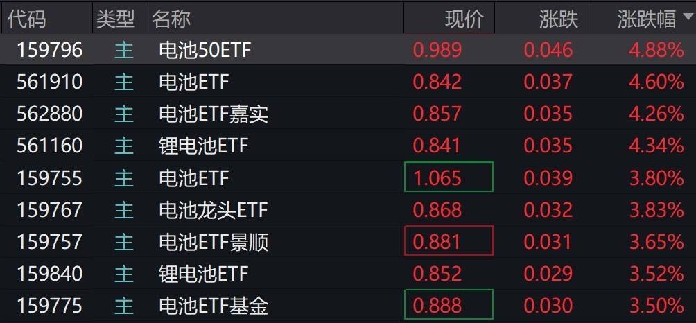 电池概念股早盘走强,阳光电源涨超7%,亿纬锂能、天赐材料涨超6%。