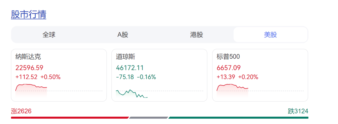中概股方面,纳斯达克中国金龙指数大涨,一度涨超2%。个股方面,小马智行涨逾6%,老虎证券涨逾5%,新东方涨超7%,阿里巴巴涨逾5%。贝壳、哔哩哔哩涨近4%,理想汽车涨超3%,百度、网易、京东等涨超2%。