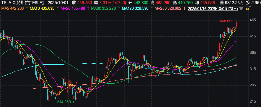 当地时间10月1日,特斯拉美股收涨3%,盘中涨幅一度逼近4%。据福布斯消息,受益于特斯拉市值增长,特斯拉CEO埃隆·马斯克成为史上首位身家达5000亿美元的人。